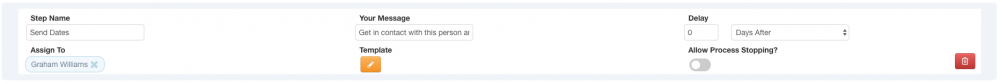 You can add as many stages to a process as you need, whether its a single reminder or a comprehensive flow of tasks being assigned to different people. You can set this all up and, when triggered, the process will run in the background. At any point you can terminate the process if it no longer become necessary.